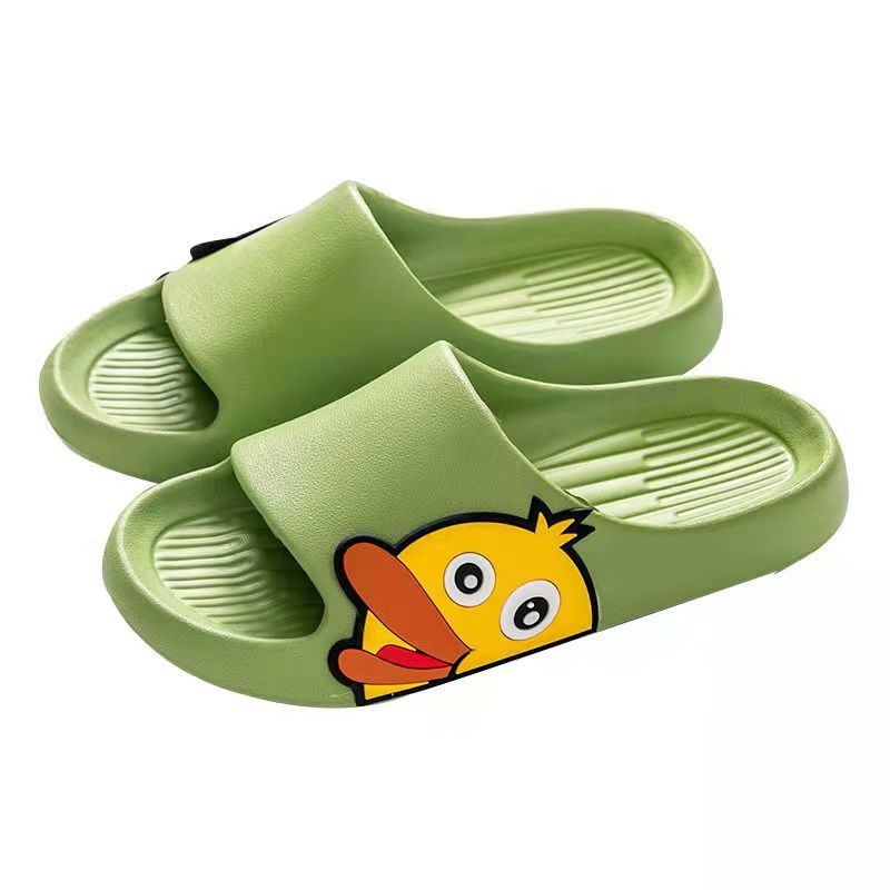 绿色鞋身配可爱小黄鸭图案,卡通设计深受儿童喜爱。防滑鞋底,柔软舒适,让孩子爱上穿拖鞋。